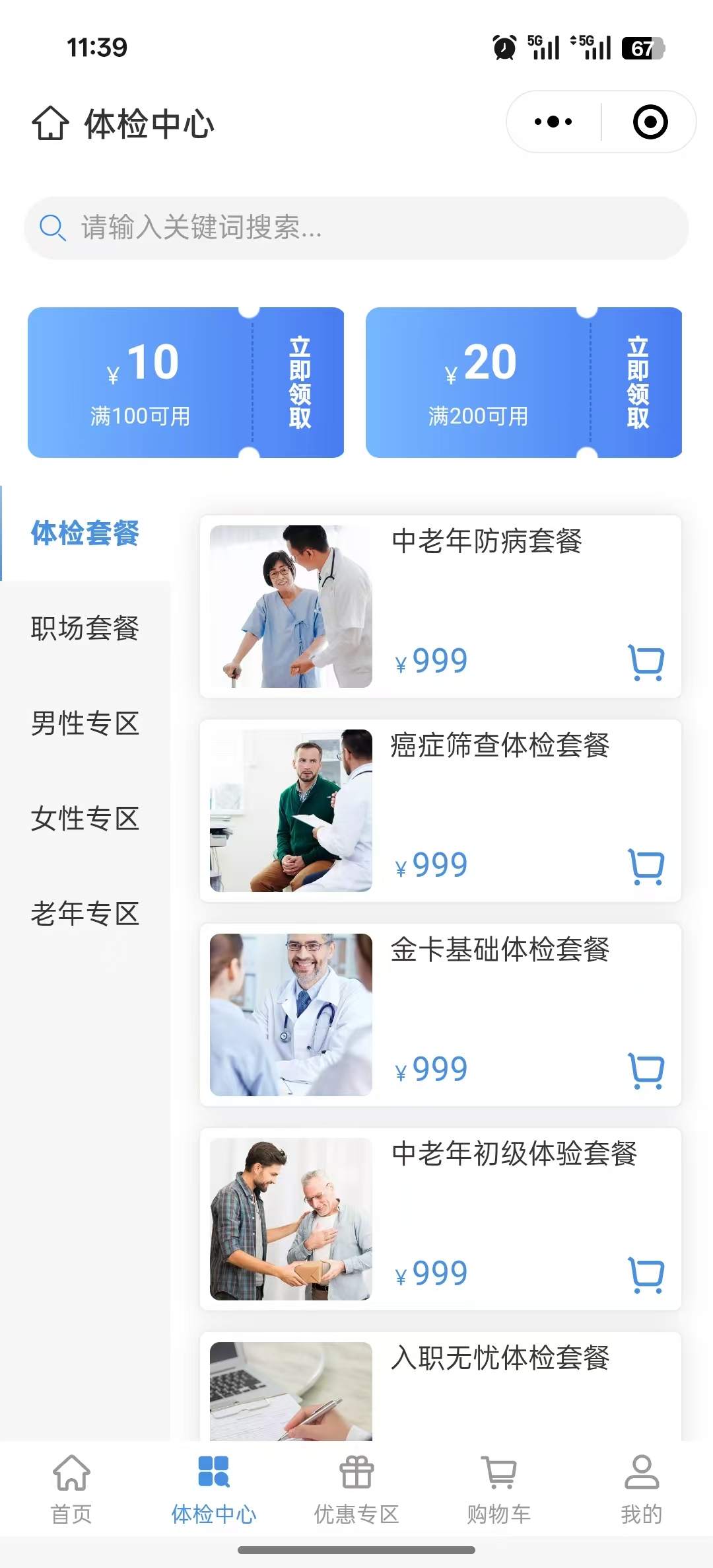 灵活选套餐:提供基础/高端/职业病专项等套餐,支持自定义加项。